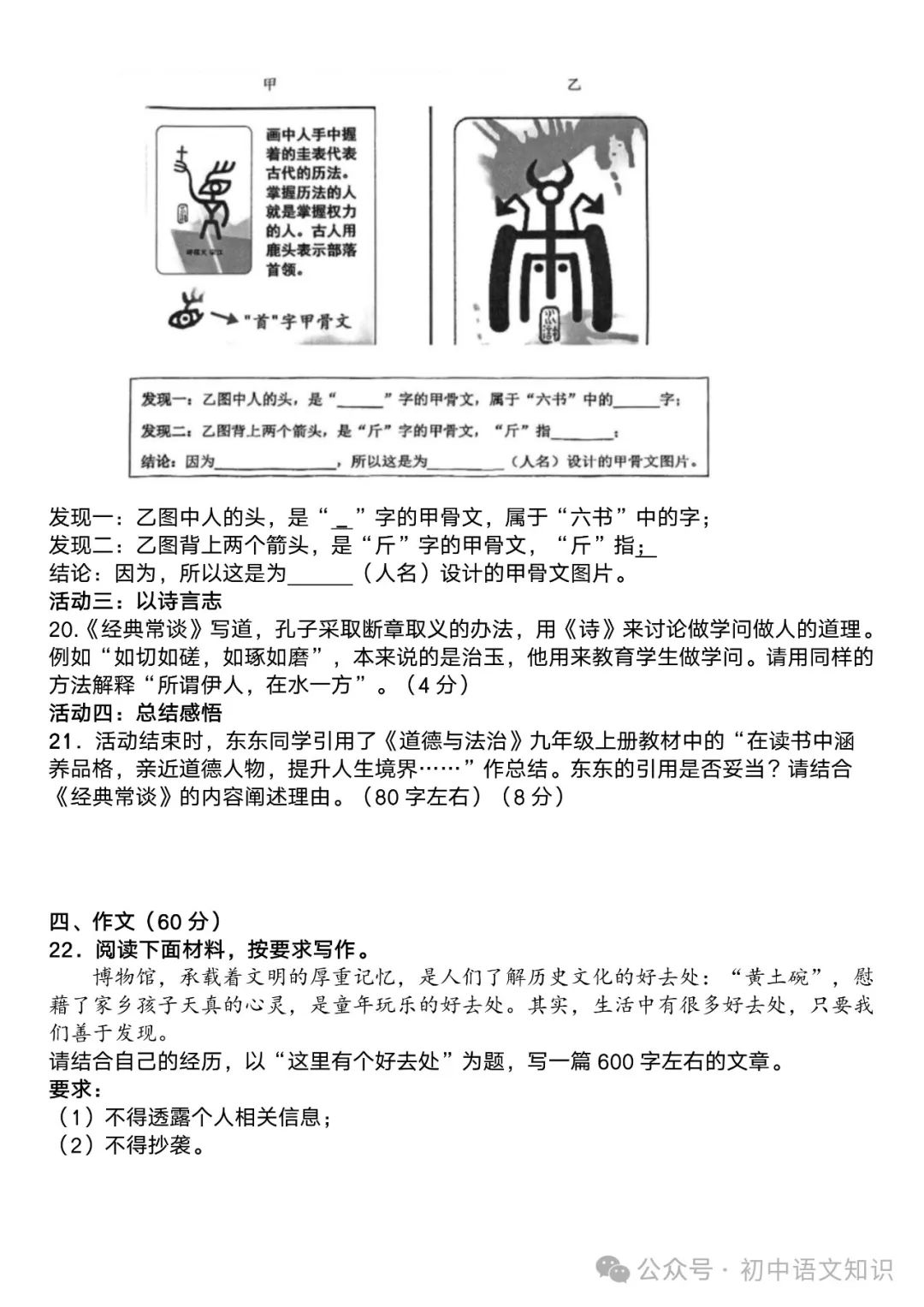 21.答案示例:妥当。本次活动意在弘扬经典传承文化,引文概括了阅读经典在成长中的重要作用,阐明了活动的意义。《经典常谈》提及司马迁创作《史记》的故事,感受到他坚韧不拔、自强不息的精神品质,丰富了自己的精神世界。