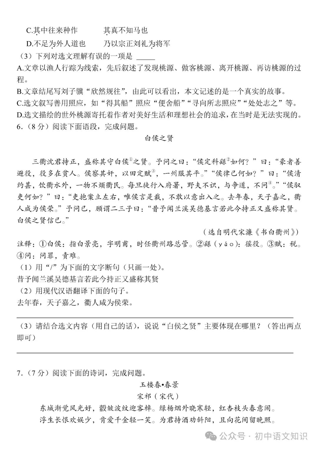 15.第⑥段画线句是否可以删去?请说明理由。(5分)
